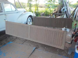 Recyclage de portes de placards en les habillant de sable de mer (collé a la résine polyester), qq baguettes de perciennes pour l'entourage et deux bois flottés en guise de poignées… c'est du plus bel effet ...