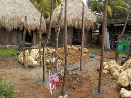 Après une semaine d'un déménagement intensif, création d'une nouvelle boite aux lettres et scellement des poteaux pour la volière et la cuisine extérieure, petite photo de la terrasse potager ou l'on aperçois le tuteurage des pieds de tomates ...