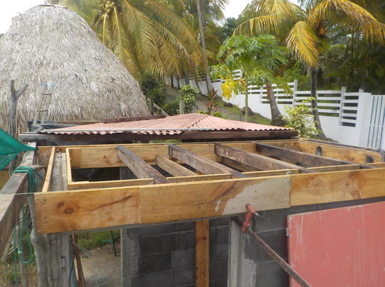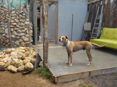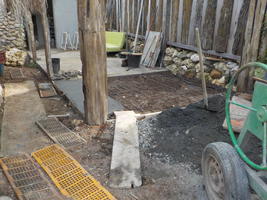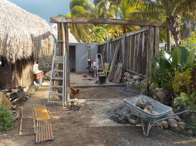 la dalle du garage de la 403 a avancée de 2m50 et samoussa veille le canard perché. la douche s'est dotée de 3 hublots et on imagine déjà la végétation accrochée aux parois...