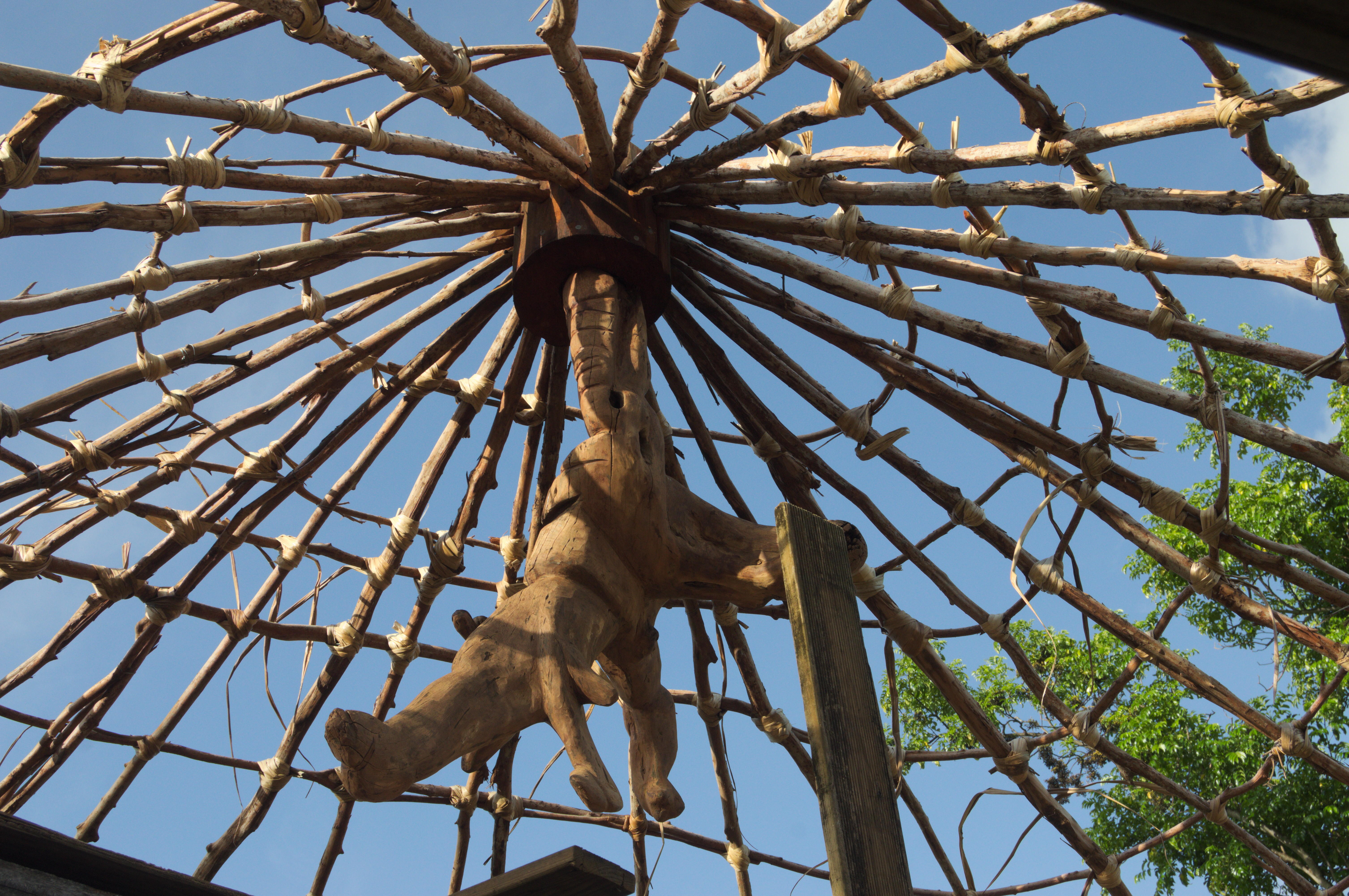 Le poinçon de Babiche est en place. Encore quelques poutres à poser et il jouera son rôle en consolidant la structure, en plus d'apporter une aura positive sur la maison.