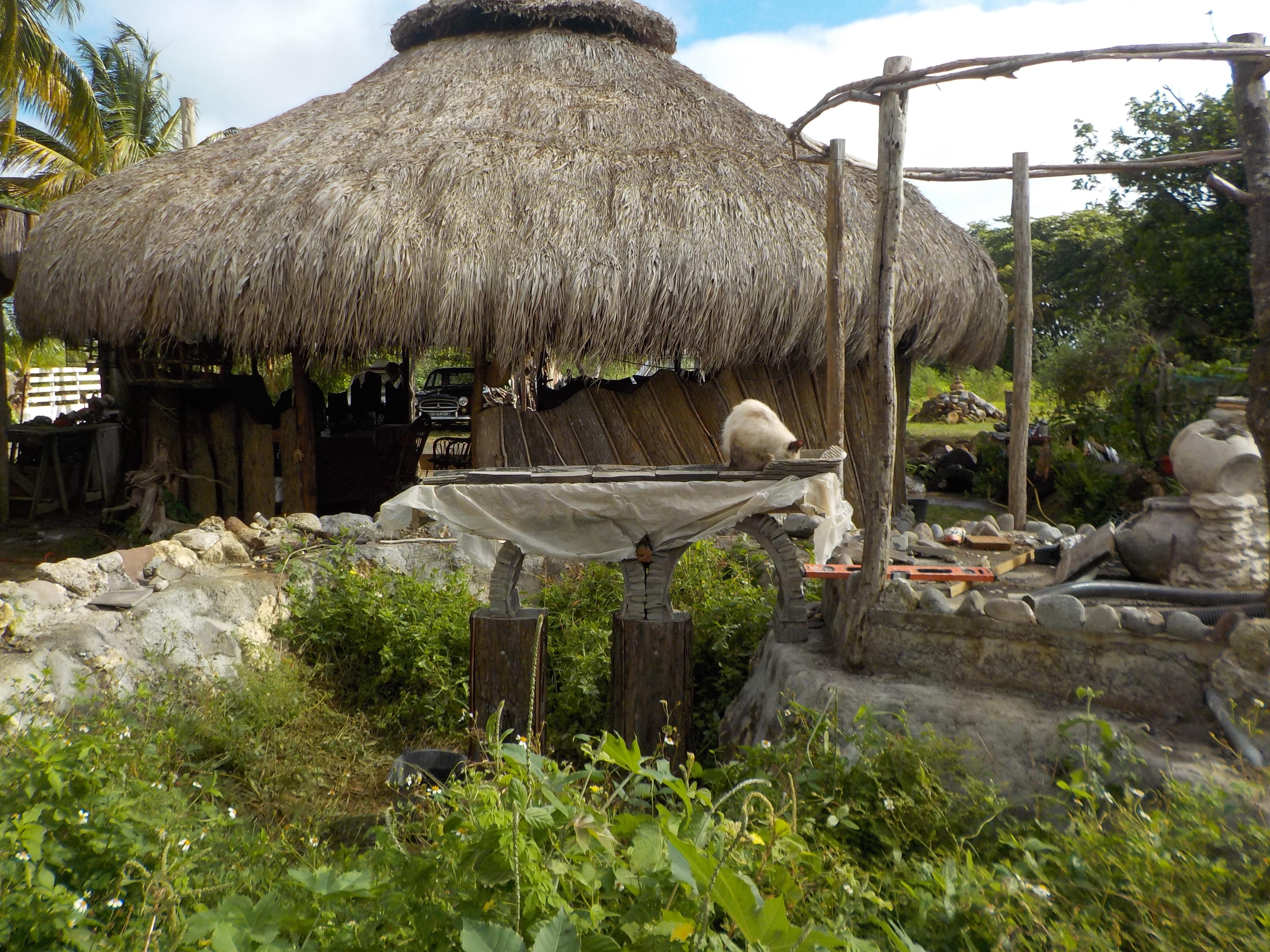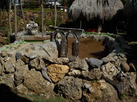 Le temps du bassin est arrivé… l'aqueduc sur les porches en pierre est confectionné, désherbage effectué et nivelage de la terre réorganisé... (chats et chiens avaient prit le bassin vide pour une ère de jeux, voir plus…)