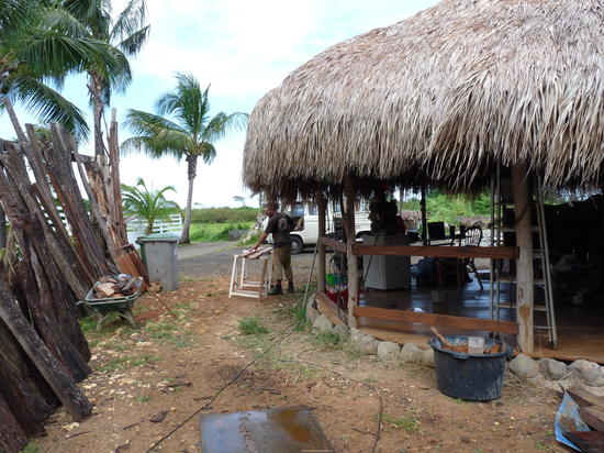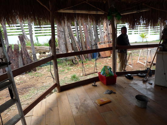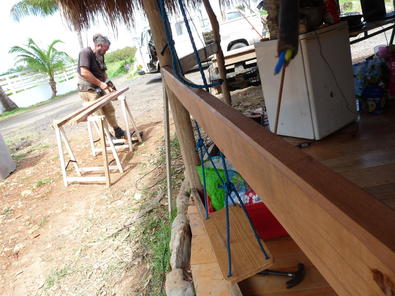 Mise en places de traverses en bois rouge pour fixer les croutes a bois coté salon...