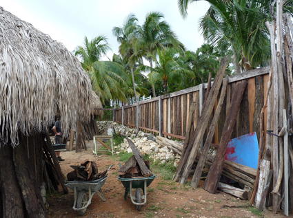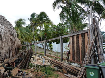Réalisation de la palissade coté chemin, pour abriter le local technique et la 403 du vis a vis et des embruns...