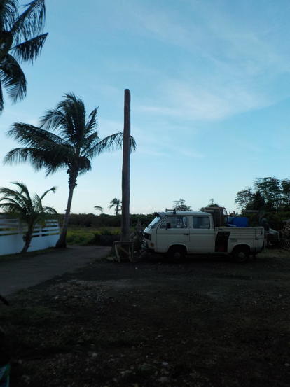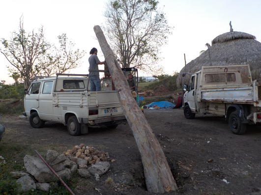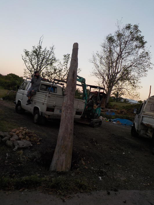 dressage d'un des deux poteau du porche d'entrée... pour l'instant celui ci monte jusqu'à 6 mètre...