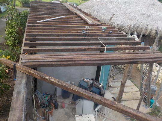 Préparation et mise en place des traverses de la toiture végétalisée et début du voligeage …