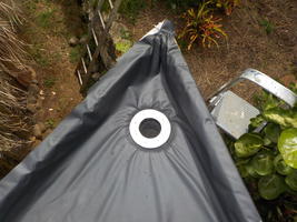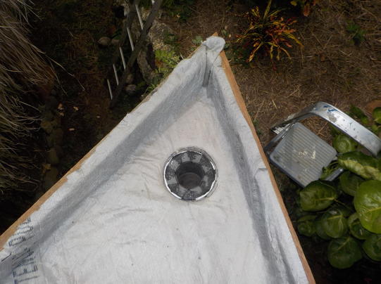 Détail du coin bas qui accueil la descente pour évacuer l'eau de pluie