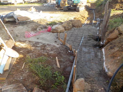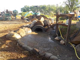 Création d'un point d'eau et du premier petit pond au dessus du canal... avec les mini porches de part et d'autre...