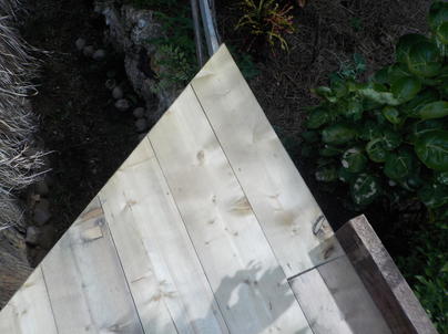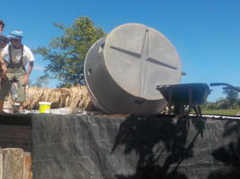 le temps passe et les choses se font … voici le temps de poster quelques photos. le chauffe eau solaire maison avec un bout de tuyau de 50m, qq bouts d'bois et du fil téléphone.