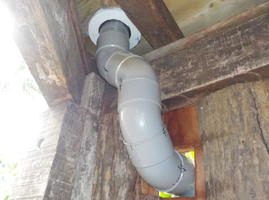 Détail du coin bas qui accueil la descente pour évacuer l'eau de pluie