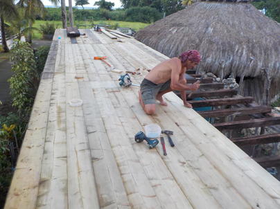 Mise en place des joues latérales… la vue du toit est plutôt sympa, on aperçois l'eau douce et l'eau salée...